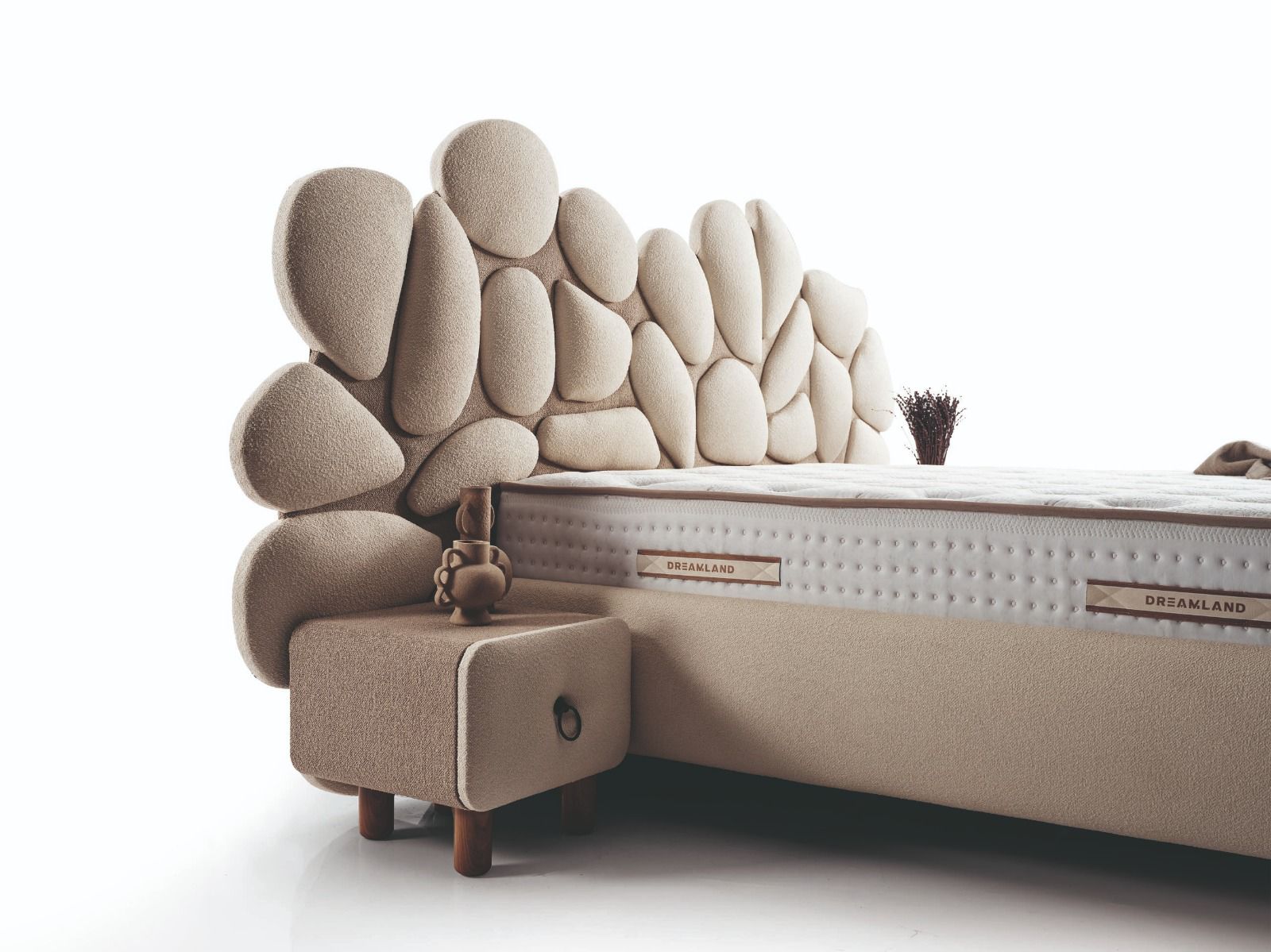 Doğadan ilham alan yumuşak formlu başlığı ve zarif tasarımıyla bu yatak, yatak