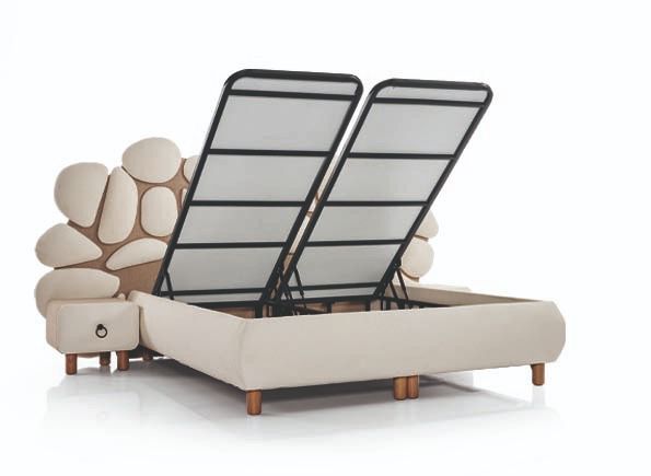 yumuşak formlar, huzur veren bir atmosfer oluştururken; kaliteli kumaşı ve ergonomik yapısı üst düzey uyku konforu sunar. Sağlam baza