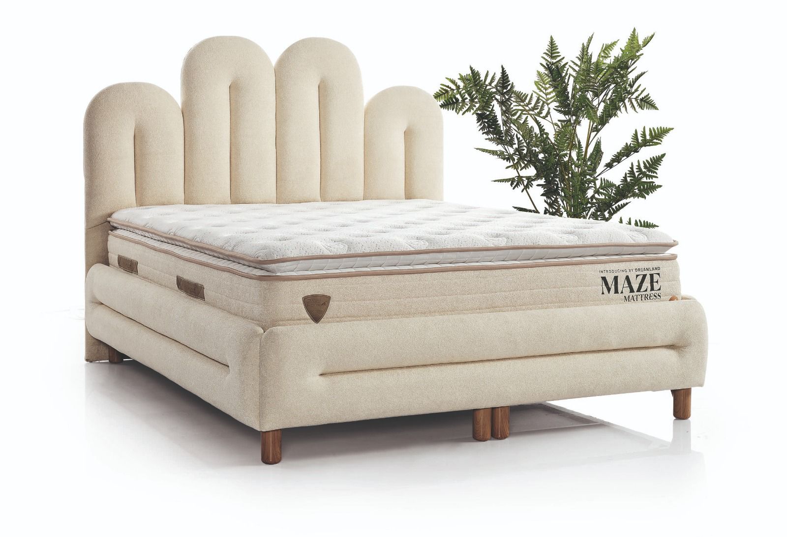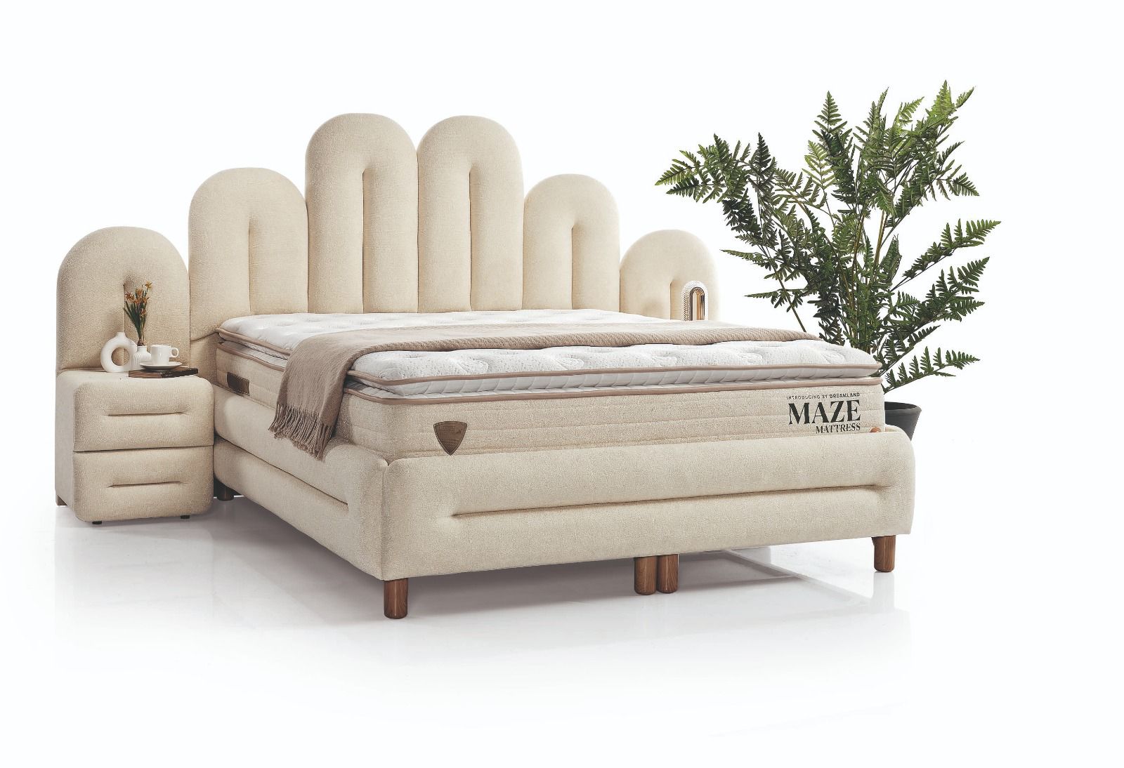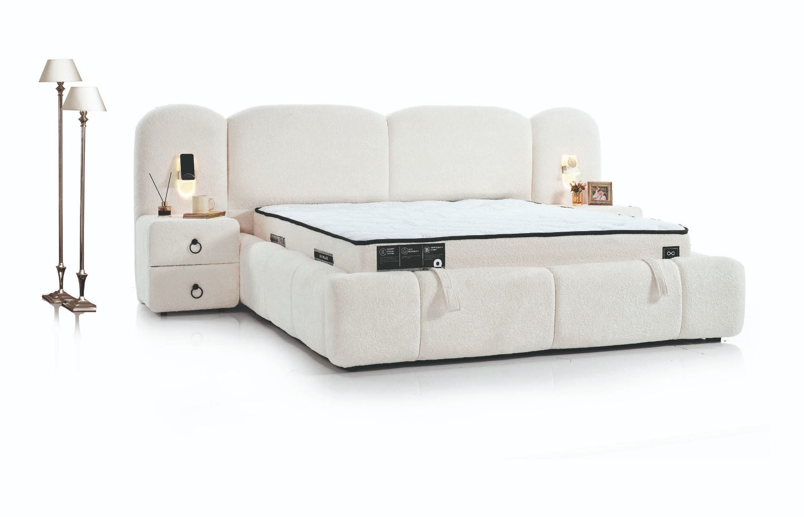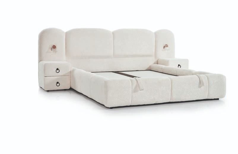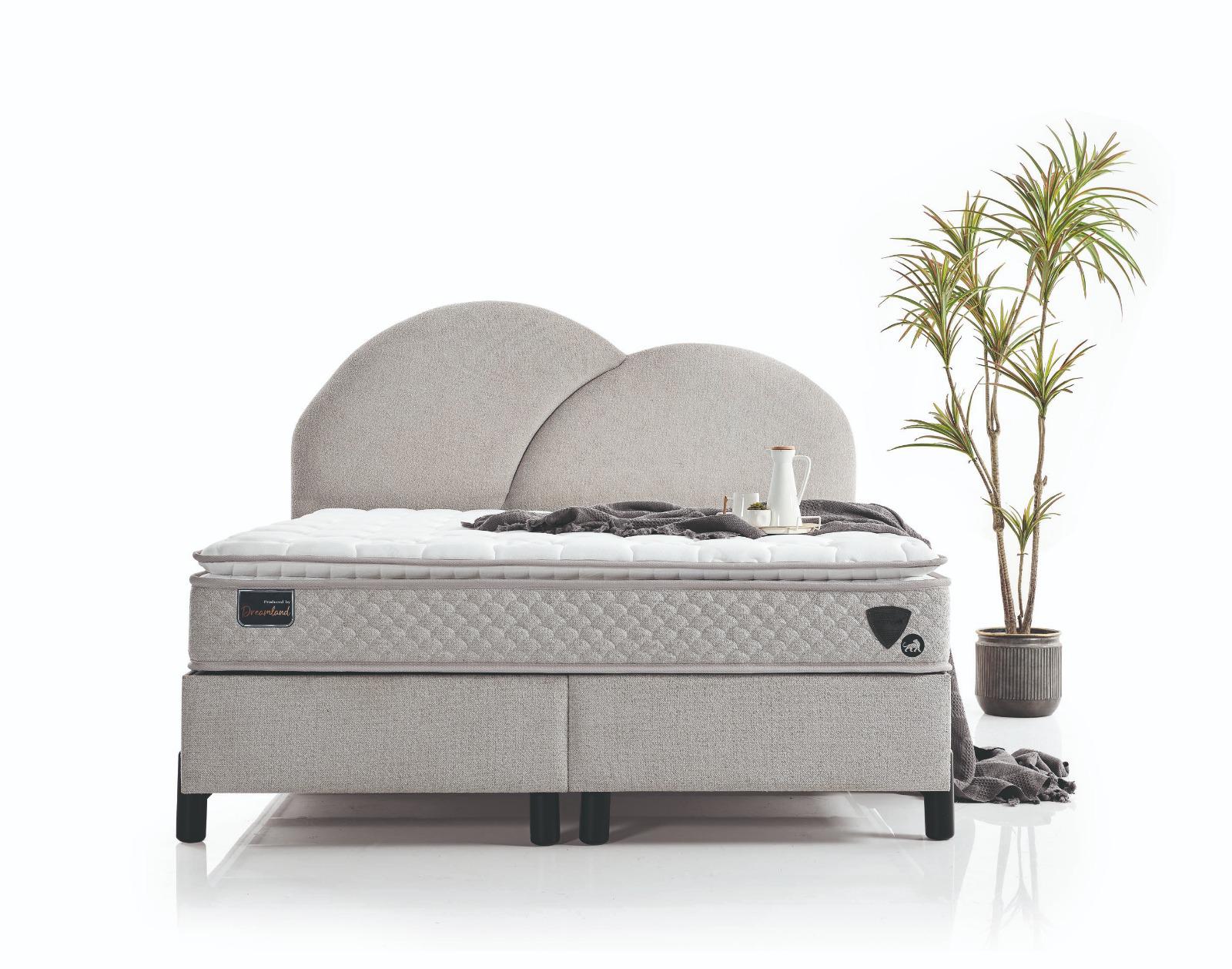 yumuşak formlar, huzur veren bir atmosfer oluştururken; kaliteli kumaşı ve ergonomik yapısı üst düzey uyku konforu sunar. Sağlam baza