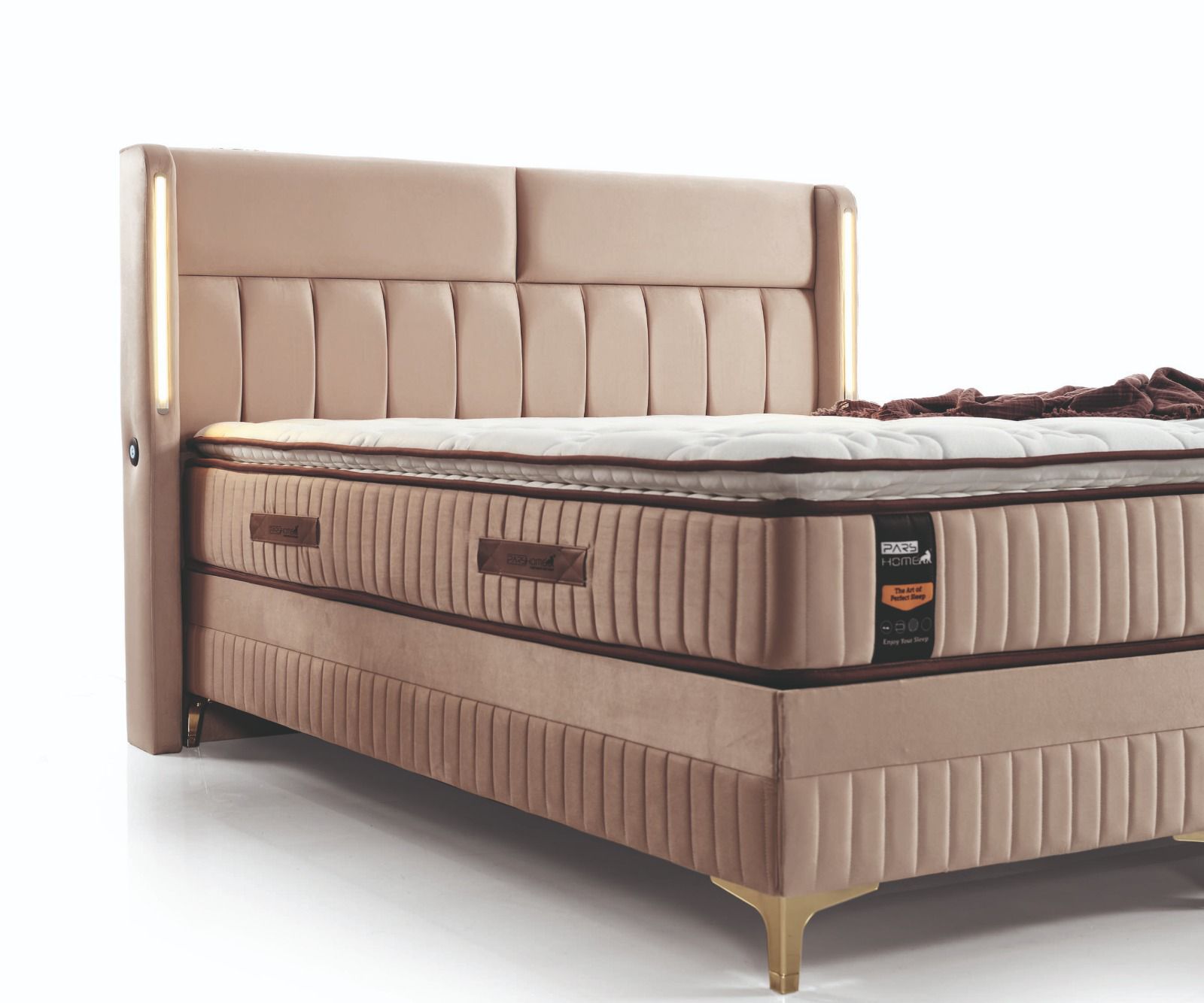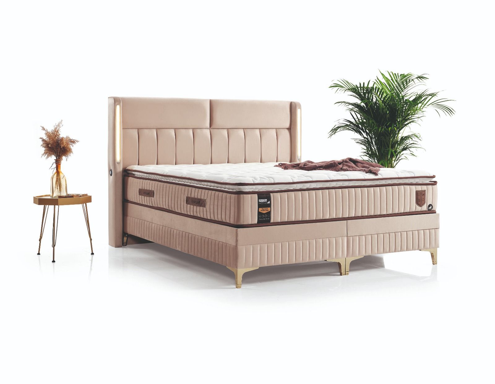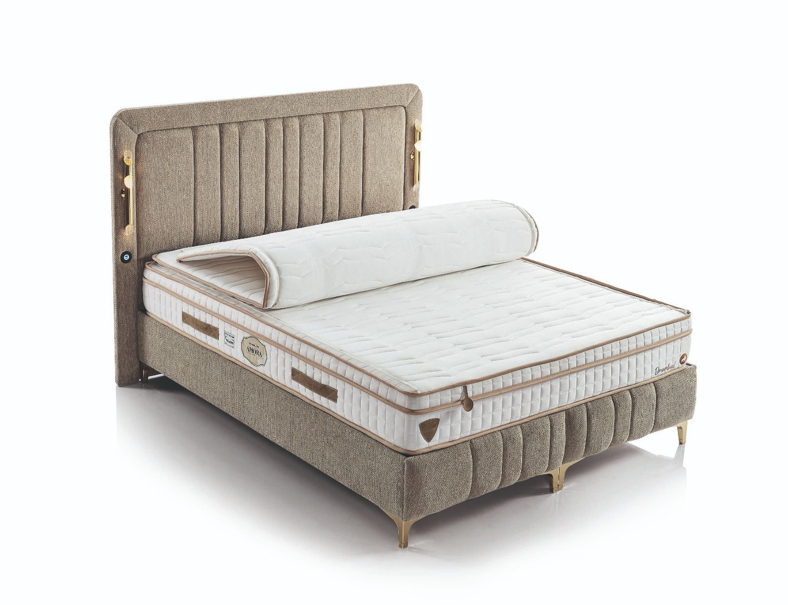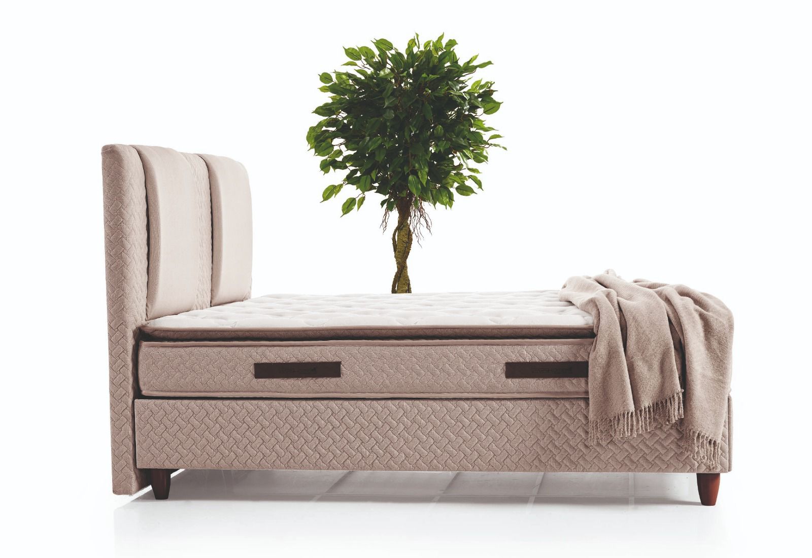 yumuşak formlar, huzur veren bir atmosfer oluştururken; kaliteli kumaşı ve ergonomik yapısı üst düzey uyku konforu sunar. Sağlam baza